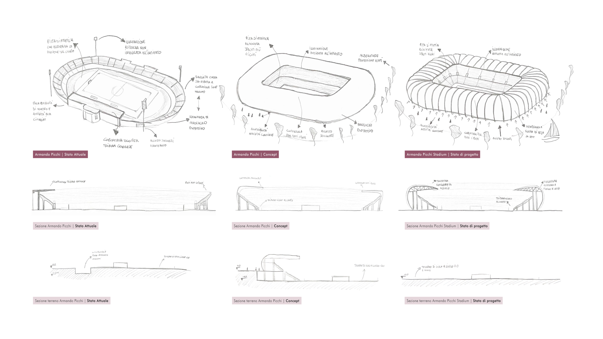 Il progetto del nuovo stadio di Livorno nasce come intervento di rifunzionalizzazione della Cittadella dello Sport, con l’ obiettivo di trasformare un’ infrastruttura obsoleta in un polo sportivo e urbano contemporaneo. Lo stadio diventa parte di un sistema multifunzionale che integra impianti sportivi, spazi verdi e aree di aggregazione, rafforzando il rapporto con il tessuto urbano ed il paesaggio. Il progetto pone al centro sostenibilità, accessibilità e tecnologia, proponendo un’ architettura iconica ispirata alla tradizione nautica della città. Non solo un impianto sportivo, ma un’ opportunità di rigenerazione urbana e sociale per Livorno.