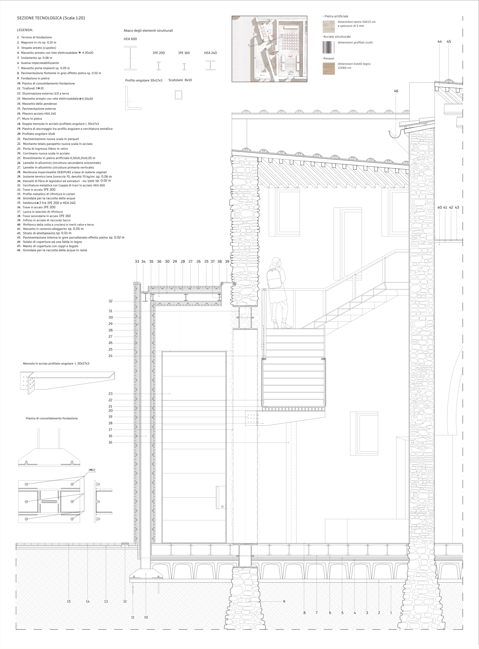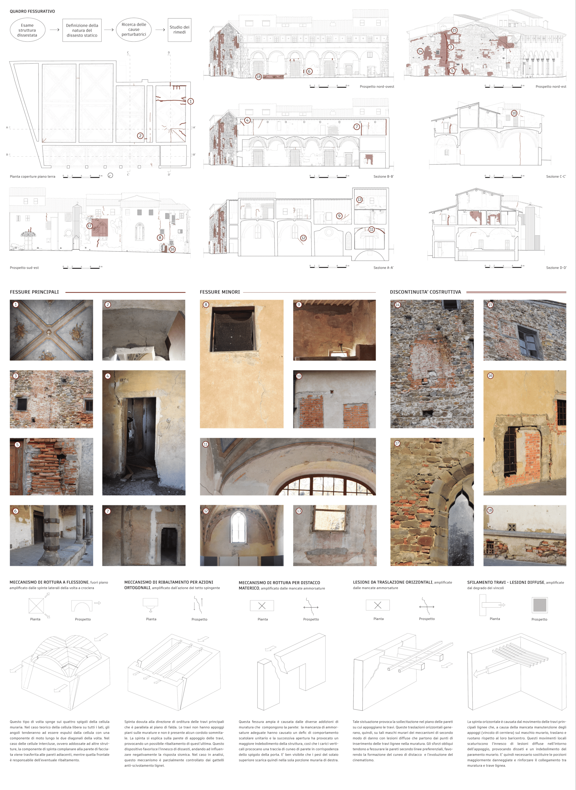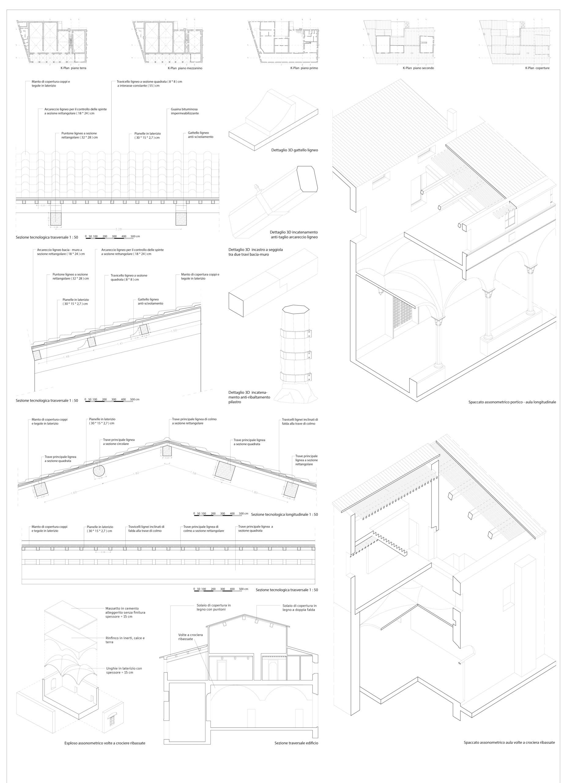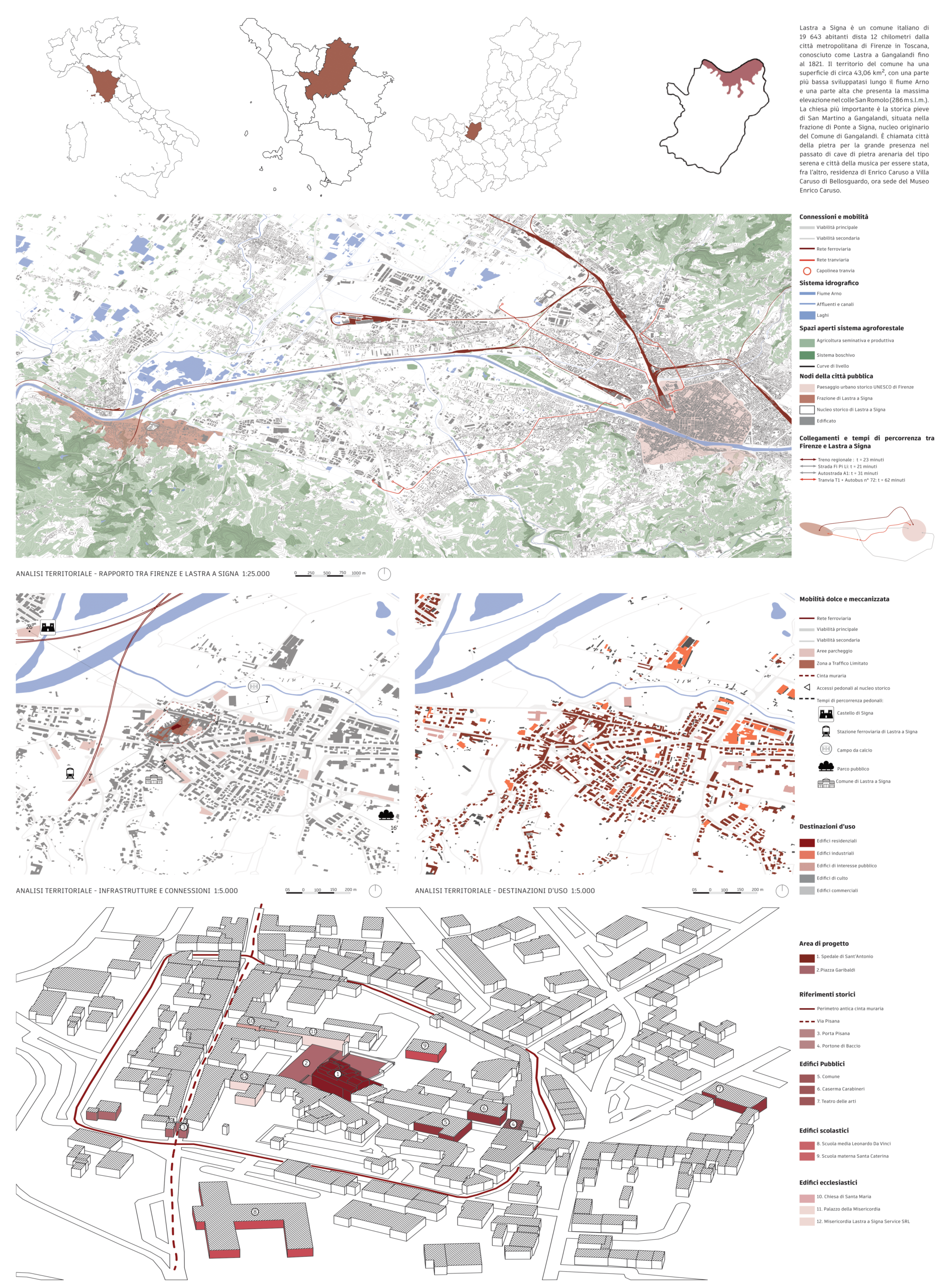 L’intervento sullo Spedale Sant’Antonio rispetta i principi del restauro e il legame con la sua identità storica, reinterpretando la funzione originaria di accoglienza. Da luogo di ricovero, diventa Centro Sociale ed Educativo per bambini, con attenzione all’inclusione delle disabilità. All’esterno, l’intervento si concentra sul prospetto nord-est, dove viene realizzato un nuovo ingresso su Piazza Garibaldi. La facciata incompiuta ha un nuovo aspetto ma rispettando AUTENTICITÀ: lasciando a vista la muratura e aggiungendo con il MINIMO INTERVENTO un nuovo volume che comunicasse con l’esistente. Nell’area dell’aggiunta triangolare è stato necessario aggiungere un collegamento tra il piano terra e il piano primo. I materiali utilizzati e la forma del nuovo volume vanno a rispettare la COMPATIBILITÀ sia formale che materica con il prospetto storicizzato dello Spedale. Sulla terrazza, originalmente priva di copertura è stata aggiunta una struttura reticolare in vetro per attività green per bambini. I prossimi interventi creano un tratto DISTINGUIBILE con la varie stratificazioni dei secoli. Ovviamente sia i materiali utilizzati che le forme hanno una ATTUALITÀ ESPRESSIVA dell’epoca odierna. L’intervento apportato fa si che l’edificio abbia una certa REVERSIRILITÀ, infatti le aule non sono state modificate irreversibilmente, anche l’idea dell’impianto illumino-tecnico punta a compiere meno interventi di scasso con l’aggiunta di lampadari a sospensione. (Collab.: arch. Simone Alinari, arch. Giovanni Amaducci, arch. Antonietta Lombardi)